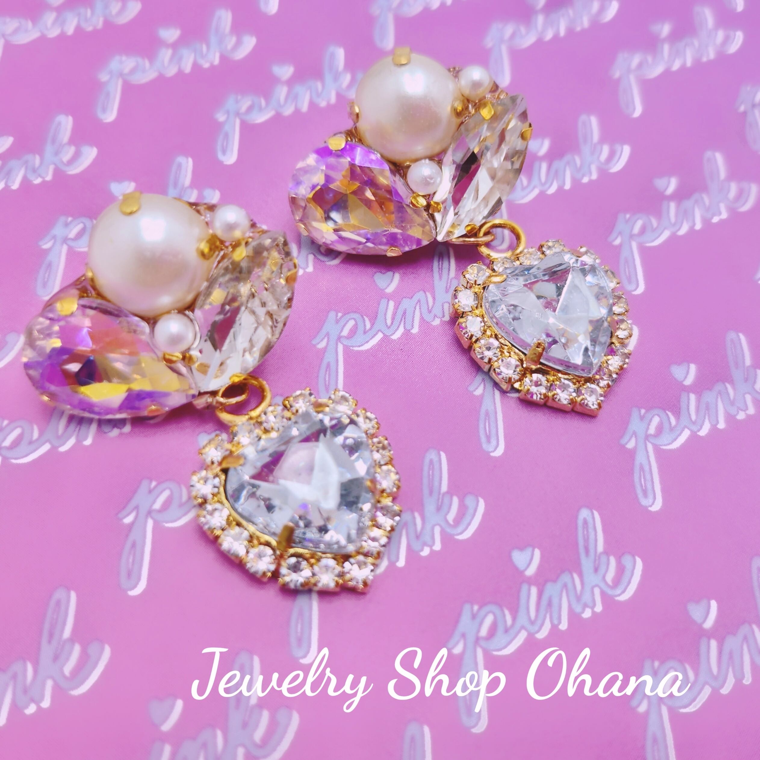 ショートビジューピアス(キラキラハート)