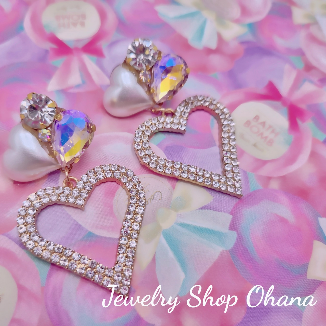 ショートビジューピアス(ビッグハート)