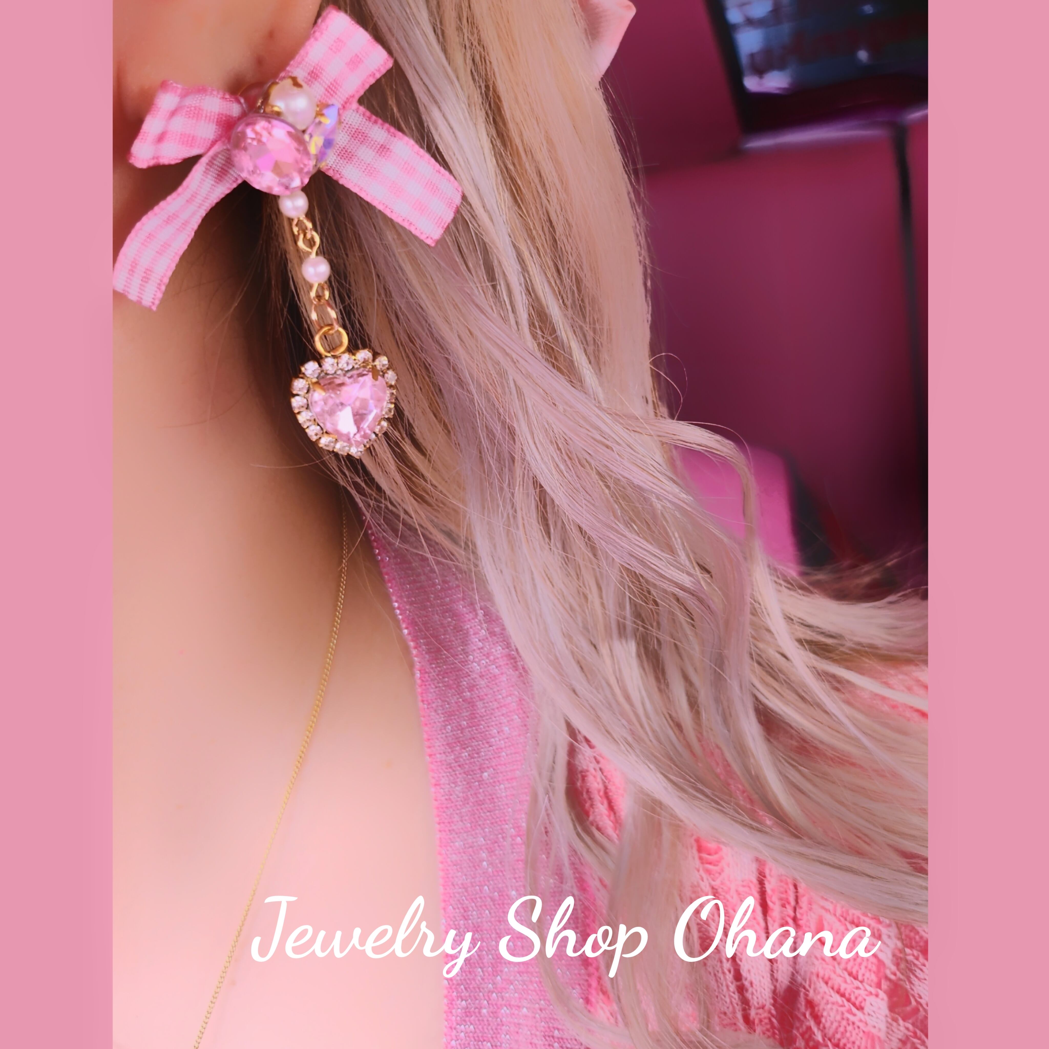 ギンガムチェックピアス(ピンク)